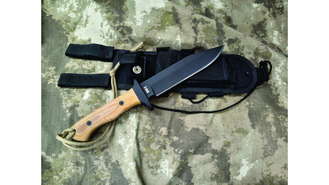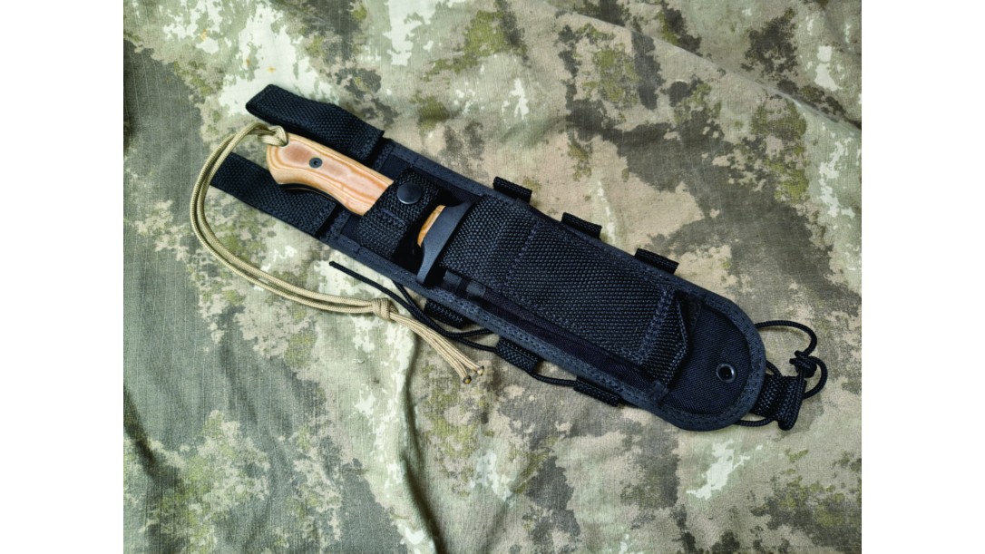 Seu cabo feito em micarta de talas com a bainha em cordura militar a prova d'água e super resistente.