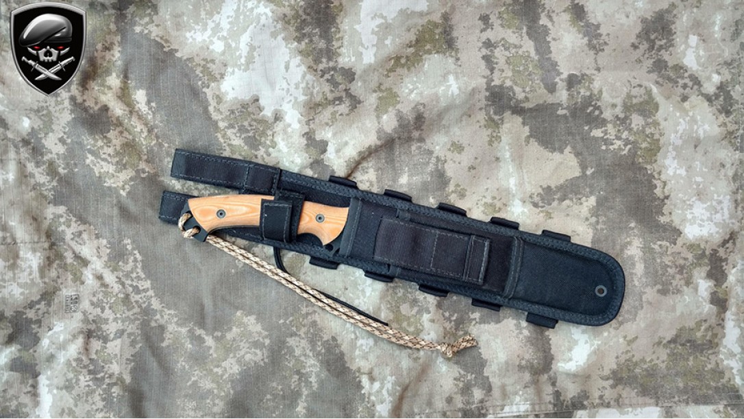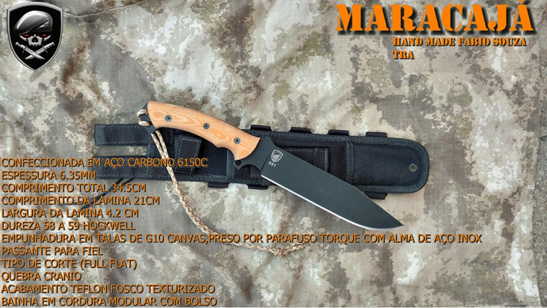 - EMPUNHADURA EM TALAS DE G10 CANVAS, PRESO POR PARAFUSO TORQUE COM A ALMA DE AÇO INOX PASSANTE PARA FIEL TIPO DE CORTE (FULL FLAT) QUEBRA CRÂNIO