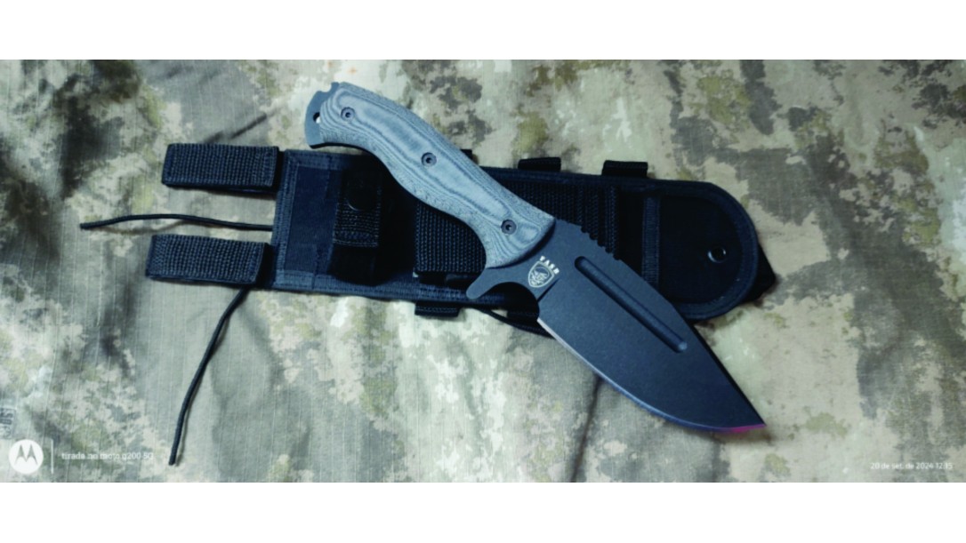 • As talas em micarta , são ergonomicamente moldadas para menos abrasão em mãos sem luvas.