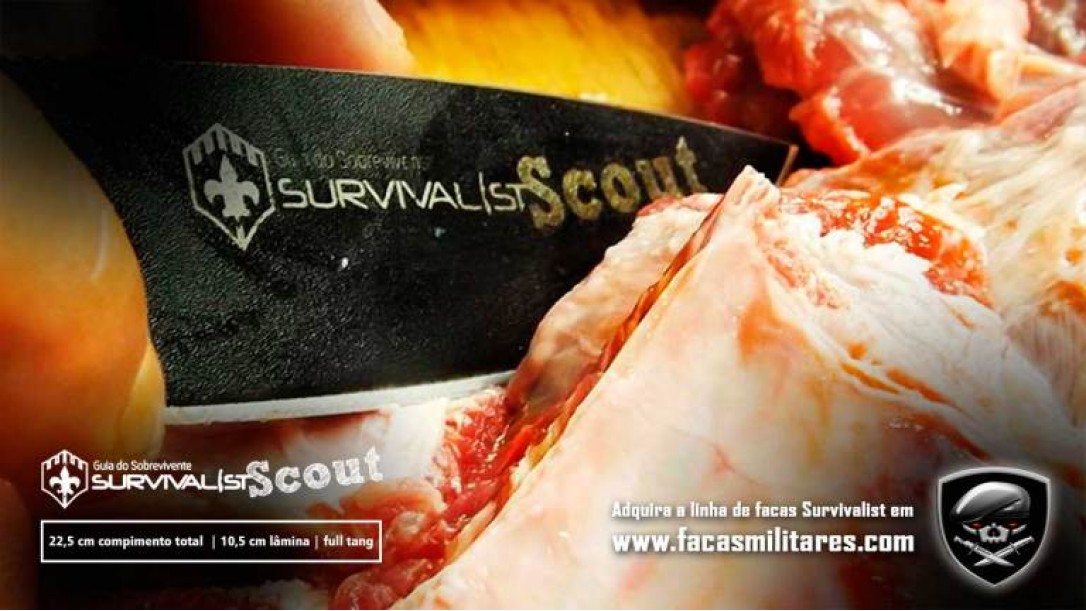 Survivalist Scout é um mix de poder de corte, portabilidade, segurança de manuseio e a qualidade. A bainha menor em cordura mantém as mesmas funcionalidades da linha Survivalist projetada pelo Batata, do Guia do Sobrevivente.